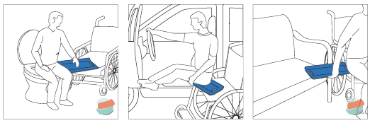 Asse per trasferimenti con doppia impugnatura per le mani e forma rettangolare. È dotata di una doppia scanalatura che consente alla tavola di adattarsi alla forma della carrozzina, fornendo all’asse una leggera sagomatura che nel contempo funge da spondina per rendere ulteriormente sicuro il trasferimento. La superficie superiore è liscia per agevolare lo spostamento attraverso lo scivolamento dell’utente, la base inferiore dell’asse presenta due fasce in materiale antiscivolo che favoriscono il grip tra l’ausilio ed il punto d’appoggio della carrozzina ed il divano, il letto, il wc o la seduta dell’auto; stabilizzando così l’ausilio. Leggera e facilmente trasportabile grazie anche allo spessore di 6 mm.