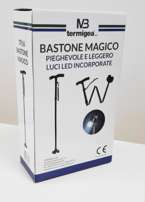 Il bastone magico Termigea sta in piedi da solo. E' possibile riporre il bastone dopo l'utilizzo con estrema facilità: si piega diventando compatto per essere comodamente inserito in una piccola borsa. Con un semplice gesto si ricompone automaticamente ed è pronto all’uso.