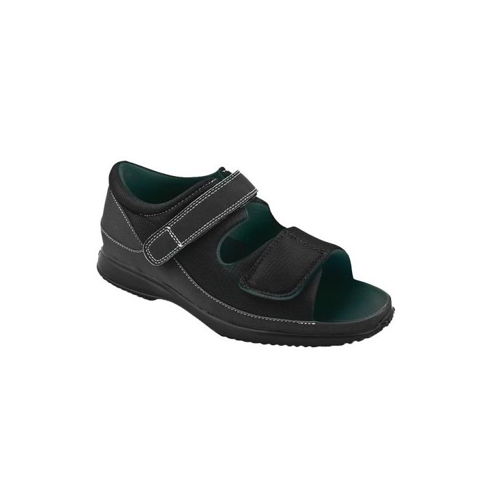 Inoltre, il sistema multivelcro agevola la chiusura con una sola mano permettendo di calibrare la calzata da M a XL. La massima stabilità è garantita grazie al contrafforte stabilizzante, alla pianta larga e alla suola biomeccanica antinciampo ed antiscivolo. La tomaia traspirante con avampiede in nylon supersoft permette di alloggiare le deformità.