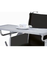 • Appoggiagambe ribaltabili, estraibili e intraruotabili, con pedane regolabili in altezza e cinturino ferma tallone