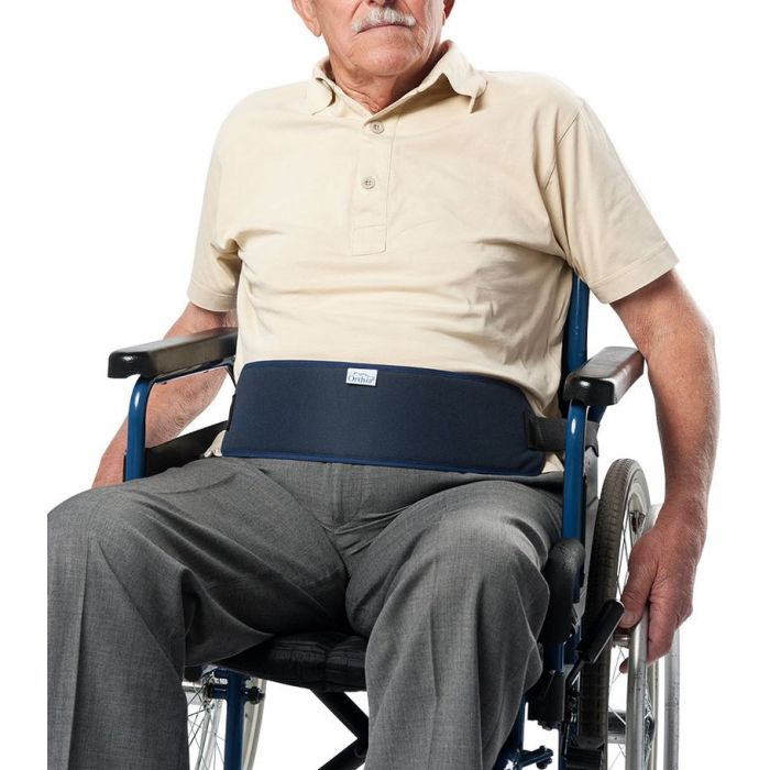 Cintura addominale di sicurezza per sedia a rotelle.