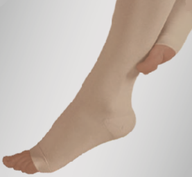 Collant riposante 140 den. Lycra punta aperta, tallone rinforzato, compressione graduata forte (mmHg 18-22).