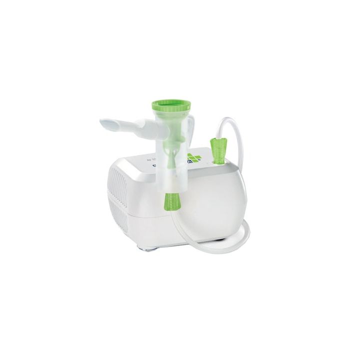 Sistema per aerosolterapia ad aria compressa per il trattamento di patologie respiratorie occasionali.