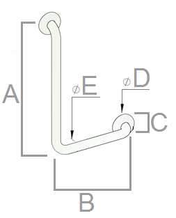 Corrimano a 90°, in acciaio inox lucido, Ø3,2 cm, completo di piastre di fissaggio in acciaio inox e ghiere coprivite in acciaio inox lucido. Si consiglia l’installazione sopra alla vasca da bagno, nella doccia oppure accanto al water, come sostegno od aiuto per sedersi o alzarsi.