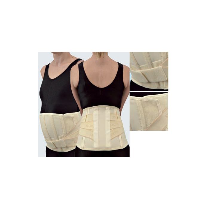 Corsetto semirigido lombosacrale per addome pendulo con rinforzi paravertebrali e tiranti pelvici
