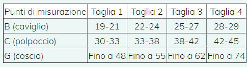- Compressione regolarmente decrescente dal malleolo alla coscia: da 18-20 mmHg