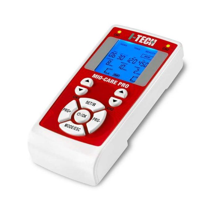 Elettrostimolatore Tens Mio-Care PRO a 2 canali con 63 programmi (14 medicali + 15 benessere + 21 fitness + 13 memorie libere personalizzabili).