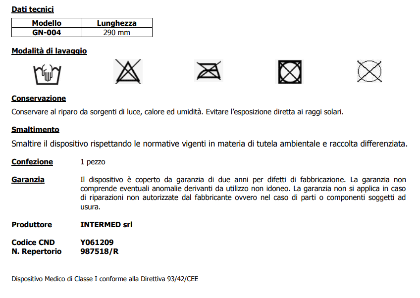 Il dispositivo medico deve essere impiegato a seguito di valutazione clinica effettuata da un medico specialista il quale, dopo la diagnosi, individuerà la misura e gli eventuali adattamenti nel rispetto delle caratteristiche morfologiche dell’arto del paziente. Tali adattamenti e la successiva applicazione della ginocchiera devono avvenire a cura di personale tecnico specializzato.