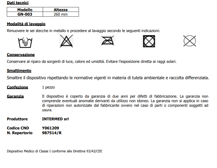 Il dispositivo medico deve essere impiegato a seguito di valutazione clinica effettuata da un medico specialista il quale, dopo la diagnosi, individuerà la misura e gli eventuali adattamenti nel rispetto delle caratteristiche morfologiche dell’arto del paziente. Tali adattamenti e la successiva applicazione della ginocchiera devono avvenire a cura di personale tecnico specializzato.