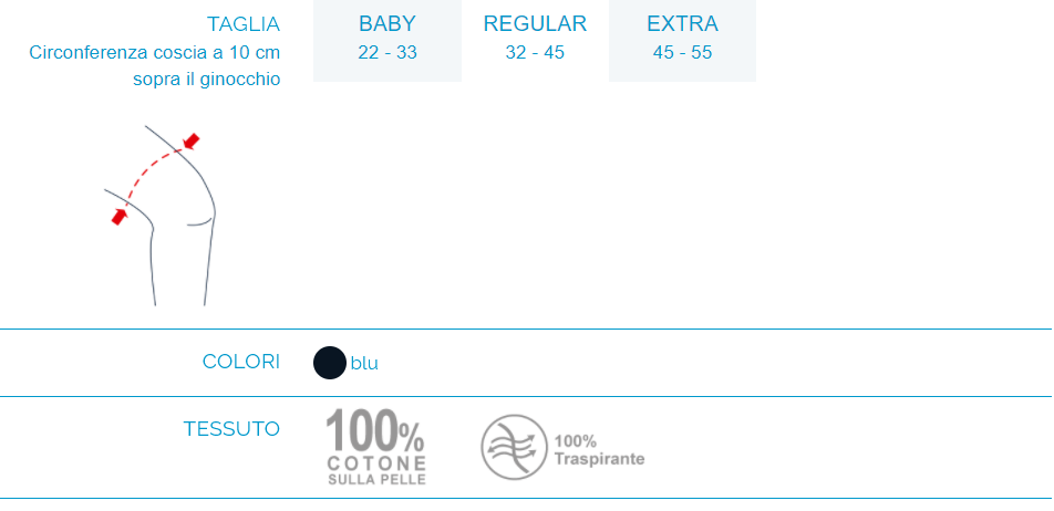 Linea Baby: circonferenza del ginocchio (10 cm sopra la rotula) 22-32 cm.