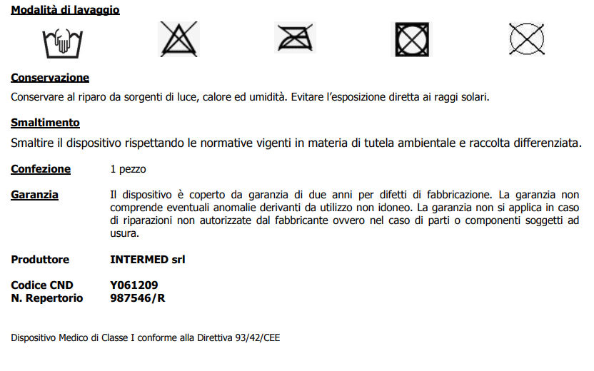  Il dispositivo medico deve essere impiegato a seguito di valutazione clinica effettuata da un medico specialista il quale, dopo la diagnosi, individuerà la misura e gli eventuali adattamenti nel rispetto delle caratteristiche morfologiche dell’arto del paziente. Tali adattamenti e la successiva applicazione del sostegno devono avvenire a cura di personale tecnico specializzato.