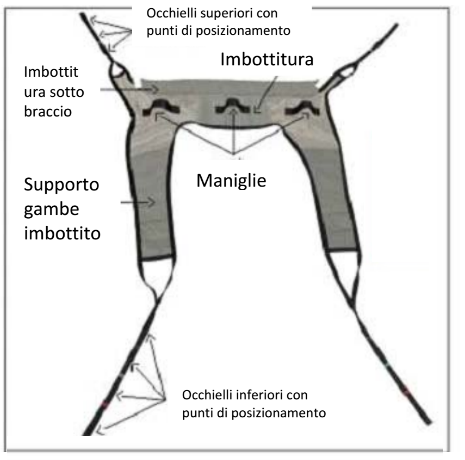 Imbracatura per il trasferimento e operazioni igieniche. Tessuto a rete. Portata Kg. 250