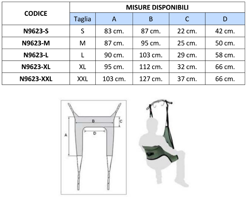 L’imbracatura N9623 viene utilizzata per il sollevamento, trasferimento e operazioni igieniche per la toilette.