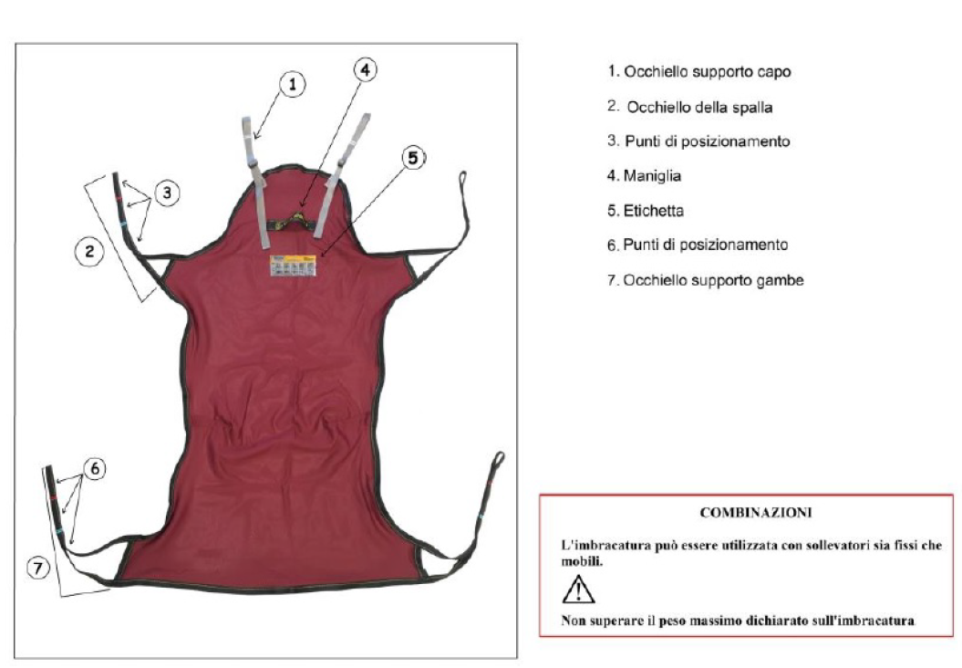 L'imbracatura sollevapersone N9643 sostiene tutto il corpo ed il capo ed è adatta per essere utilizzata sia con sollevatori fissi che mobili.