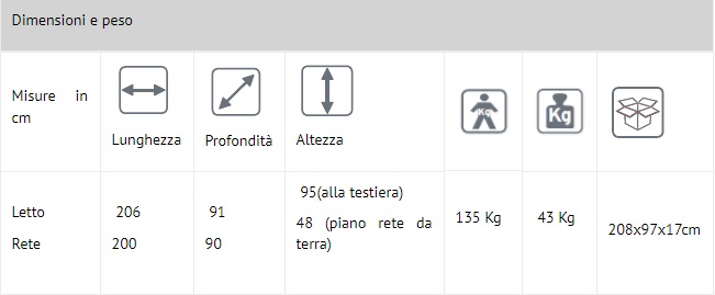 Sezione alzatesta e sezione gambe rinforzate con traverse rettangolari.
