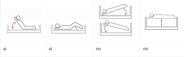 Sezione piedi regolabile automaticamente con la sezione gambe. Sezione bacino fissa.