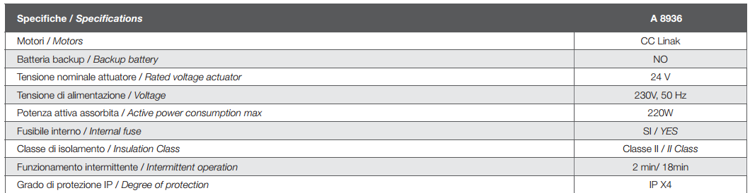 | Motori | CC Linak |