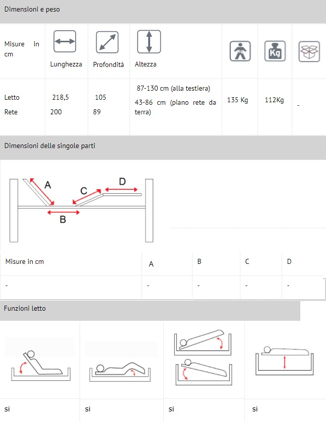 | Tipologia di letto | Elettrico |