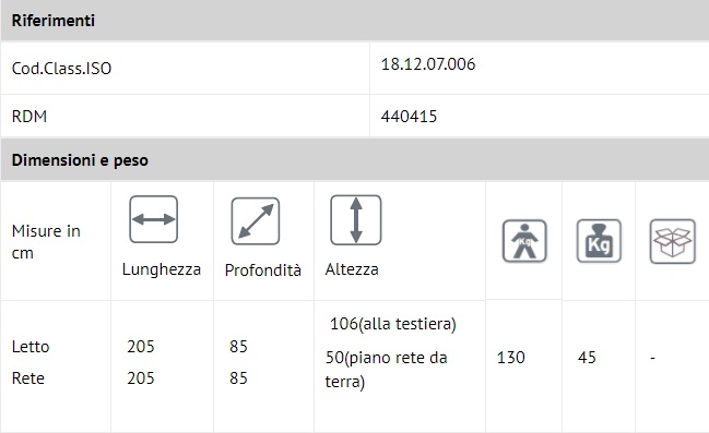 Il letto è richiudibile in due per facilitarne il trasporto. Il telaio e la rete sono verniciati a forno in colore bianco.