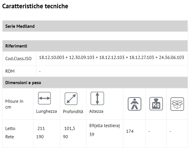 Il letto è pieghevole per facilitare il trasporto. Spalliera (testiera) e pediera in legno di faggio. Rete metallica a 4 sezioni verniciata in epossidico. Munito di 2 motori silenziosi e indipendenti. Struttura in acciaio verniciato epossidico. Sponde laterali scorrevoli ed estraibili in legno di faggio.