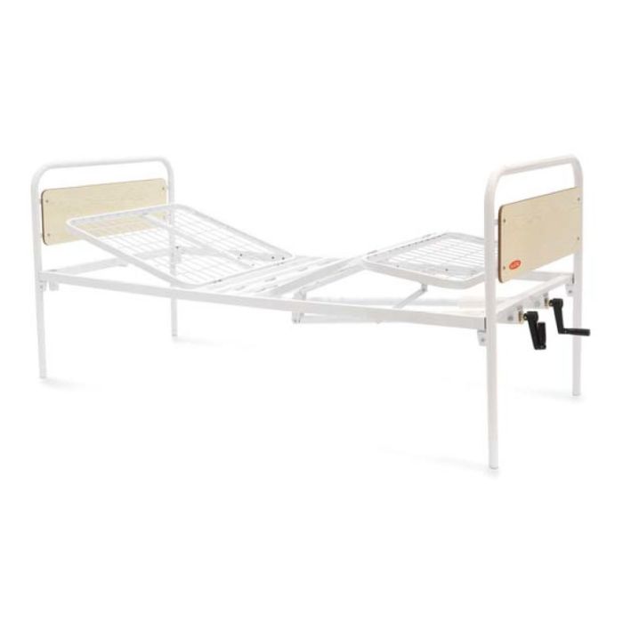 Letto a 2 manovelle e quattro sezioni. Struttura in tubolare di acciaio, verniciato a polveri con fondo a rete di acciaio elettrosaldata,