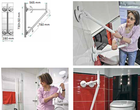 Il maniglione Quattro Power Support è fra i top gamma delle soluzioni mobili targate Roth Mobeli, famosa azienda tedesca che ha fatto della sicurezza e dell’affidabilità il suo marchio distintivo. Caratterizzato da ben 4 ventose ciascuna del diametro di 120 mm, può essere applicato facilmente a qualunque tipo di parete, purchè non sia porosa, e bloccato tramite le apposite levette che creano il vuoto.