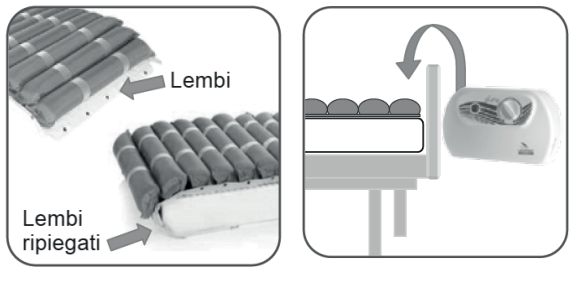 Attenzione: non usate pompe diverse da quella fornita, dato che il materasso antidecubito è tarato su una pressione specifica e potrebbe danneggiarsi o esplodere, se collegato ad una pompa inadatta.
