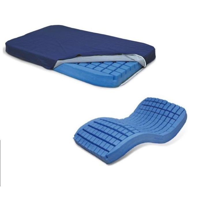 Materasso a sezione unica e bordi laterali di sostegno particolarmente utili perchè consentono la frequente movimentazione del paziente e una perfetta stabilità del materasso sul letto. Lo speciale disegno della superficie, a scanalature, permette una migliore aerazione e la movimentazione del paziente, mantenendo la temperatura corporea costante. Prodotto in poliuretano espanso ad alta resilienza e alta densità (40 Kg/m3). Resistente nel tempo. Perfettamente articolabile con le articolazioni dei letti; ottimizzazione del microclima con ampi canali di areazione. Facile e sicuro ingresso/uscita paziente, con stabilizzatori laterali. Angoli arrotondati, utili per alloggiamenti. Indicato per pazienti a basso rischio di sviluppo di piaghe da decubito.