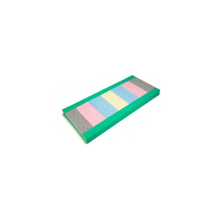 Materasso ventilato composto da una struttura portante in poliuretano D35 altezza cm. 14. Interno composto da lastra forata a 7 zone con poliuretani a densità variabile D25/D35.