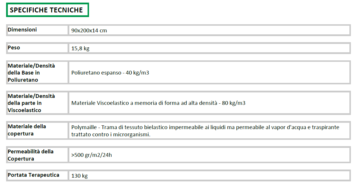 Materasso Viscoflex Evolutive in materiale viscoelastico con 2 inserti a bassa pressione, 90x200xh.14 con copertura Polymaille 1.IM
