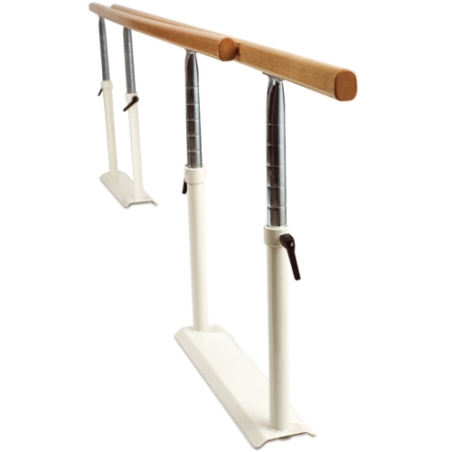 Parallela per deambulazione chiudibile. Corrimano in legno a forma anatomica regolabile in altezza.