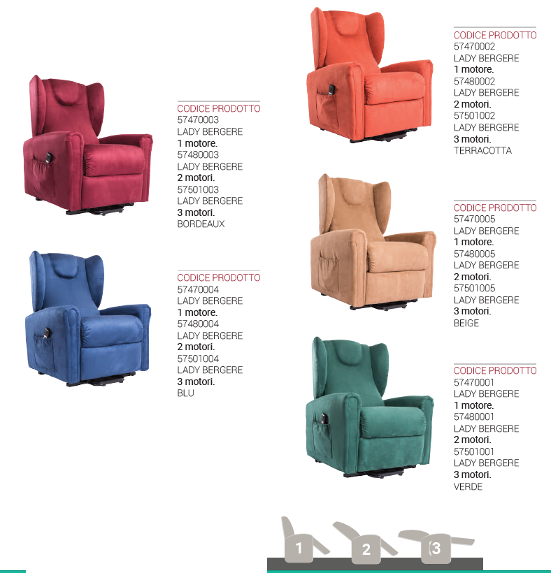 Poltrona a motore, elevabile, reclinabile, alzapersona, relax. Realizzata con un design elegante e moderno, come ausilio per disabile o con difficoltà motorie, sono dotate di un grande confort. Disponibile nella versione 1 e 2 motori.