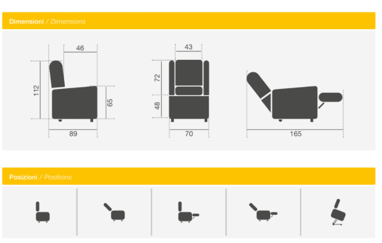 • Meccanica 2 motori con funzioni Lift /Relax.