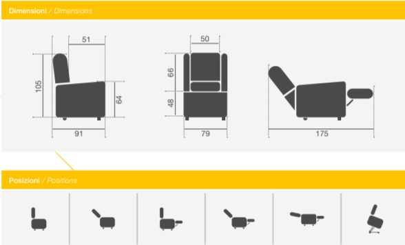 - Meccanica 2 motori con funzioni Lift / Relax/Bed.