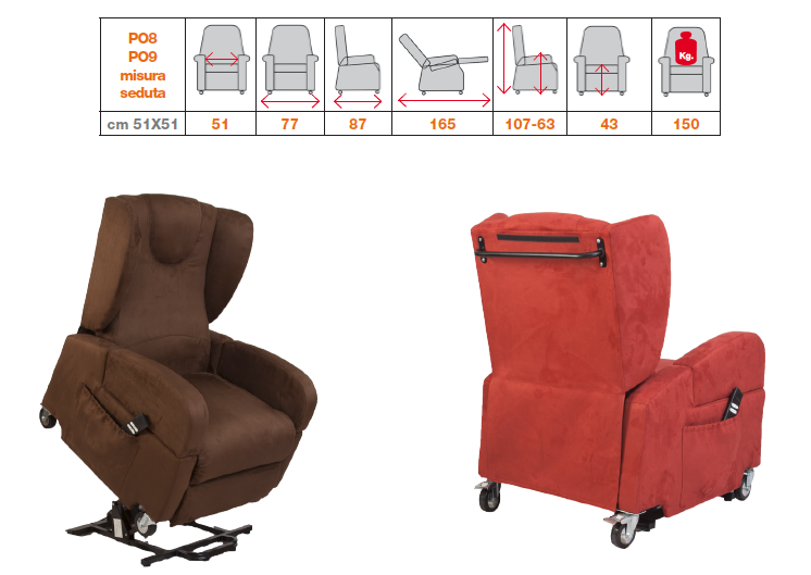 Poltrona elevabile a due motori con braccioli estraibili PO9