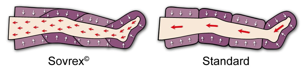 Plus+ è il nuovo modello di pressoterapia della linea PressoMassaggio con gli applicatori a tecnologia Sovrex© (gambali Sovrex e bracciale Sovrex): le 4 camere d’aria indipendenti all’interno degli applicatori, per esempio nei gambali, sono sovrapposte, così la fase di gonfiaggio di una camera a quella successiva è fluida e senza interruzioni, migliorando il confort e l’efficacia del massaggio.