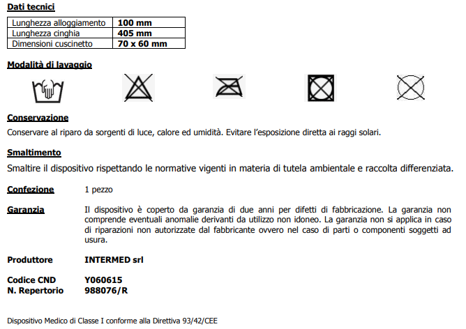 Il dispositivo medico deve essere impiegato a seguito di valutazione clinica effettuata da un medico specialista il quale, dopo la diagnosi, individuerà la misura e gli eventuali adattamenti nel rispetto delle caratteristiche morfologiche dell’arto del paziente. Tali adattamenti e la successiva applicazione del sostegno devono avvenire a cura di personale tecnico specializzato.