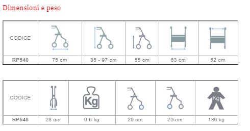 Rollator completo di pedane ribaltabili con poggiapiedi in plastica e cinturino fermapiedi. 4 Ruote di Ø 20 cm in PU. Ruote frontali piroettanti con forca completa di catarifrangente, ruote posteriori fisse. Dotato di freni a doppia funzione sulle ruote posteriori. Impugnature anatomiche regolabili in altezza, complete di catarifrangente. Schienale reversibile per doppia funzione rollator-carrozzina. Dotato di portabastone/stampella, seduta e borsa. Facilmente pieghevole per essere riposto e trasportato.
