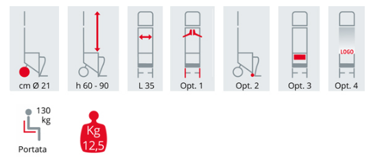 - Braccioli ribaltabili o estraibili con sistema di sbloccaggio rapido e arresto di sicurezza.