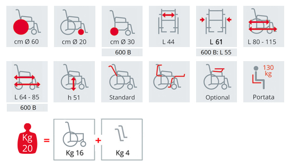 Sedia a rotelle / Carozzina pieghevole articolata autospinta