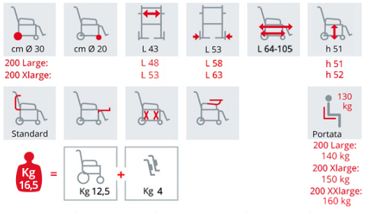 Attenzione i freni poste sulle maniglie non sono parte della carrozzina standard.