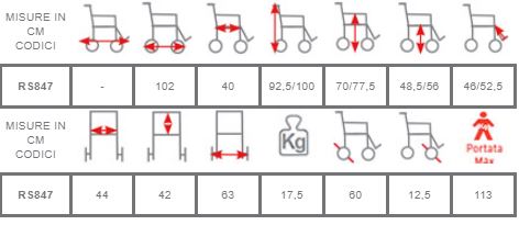 Seduta con apertura centrale per consentire l’utilizzo del secchio. Pedane girevoli, estraibili con poggiapiedi regolabili in altezza. 2 ruote posteriori con sistema quick release Ø 60 cm, 2 ruote anteriori piroettanti Ø 12,5 cm