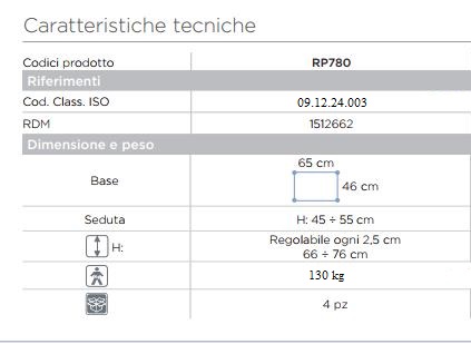 Struttura in tubo di alluminio anodizzato con confortevole seduta in polietilene, dotata di secchio e braccioli in plastica e puntali in gomma antiscivolo.