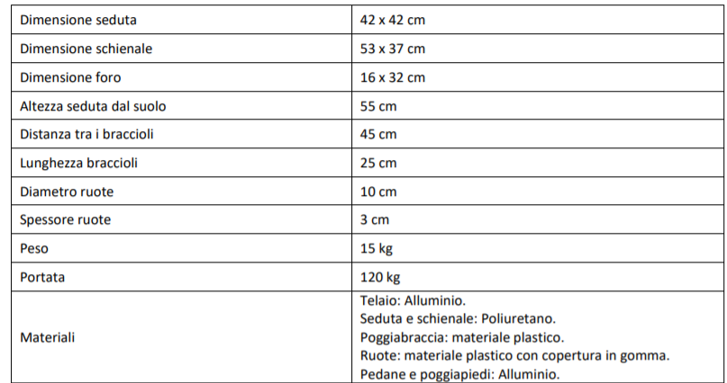 - Sedia adatta per un utilizzo in ambiente ospedaliero o domiciliare.