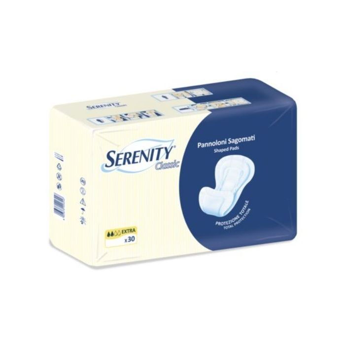 Il pannolone sagomato Serenity, da utilizzare in abbinamento alle apposite mutandine elasticizzate Serenity, lavabili e riutilizzabili, ha una forma anatomica che offre comodità e libertà di movimento.