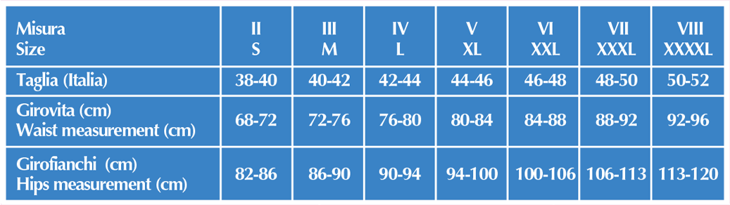 Guaina fortemente contenitiva, con fascia sostenitiva alzabusto, anatomico girogamba, completamente foderata con tessuto elastico con il cotone sulla pelle.