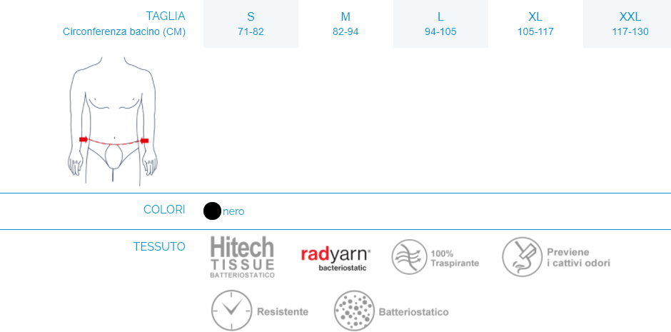 - Innovativo tessuto Radyarn, anallergico e traspirante, assicura benessere e tollerabilità a contatto con la pelle.