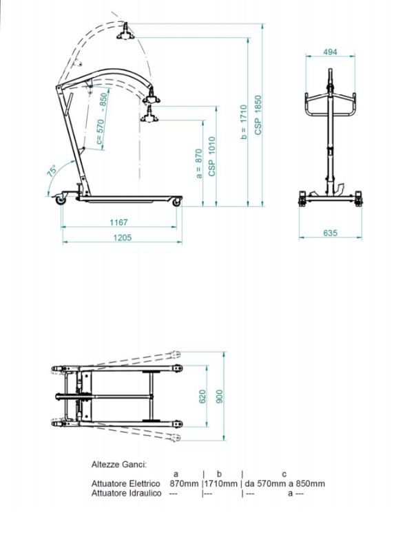 Sollevatore pazienti Elettrico N115/140 portata 140 Kg