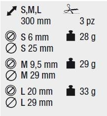 Una confezione contiene 3 pezzi che si differenzia per diametro del foro interno e spessore.