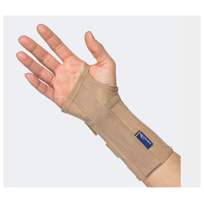 Supporto palmare in alluminio modellabile, rimovibile. Chiusure con cinturini a Velcro.
